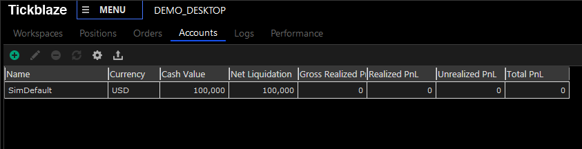 2.The "SimDefault" default paper trading account will be displayed as shown below: