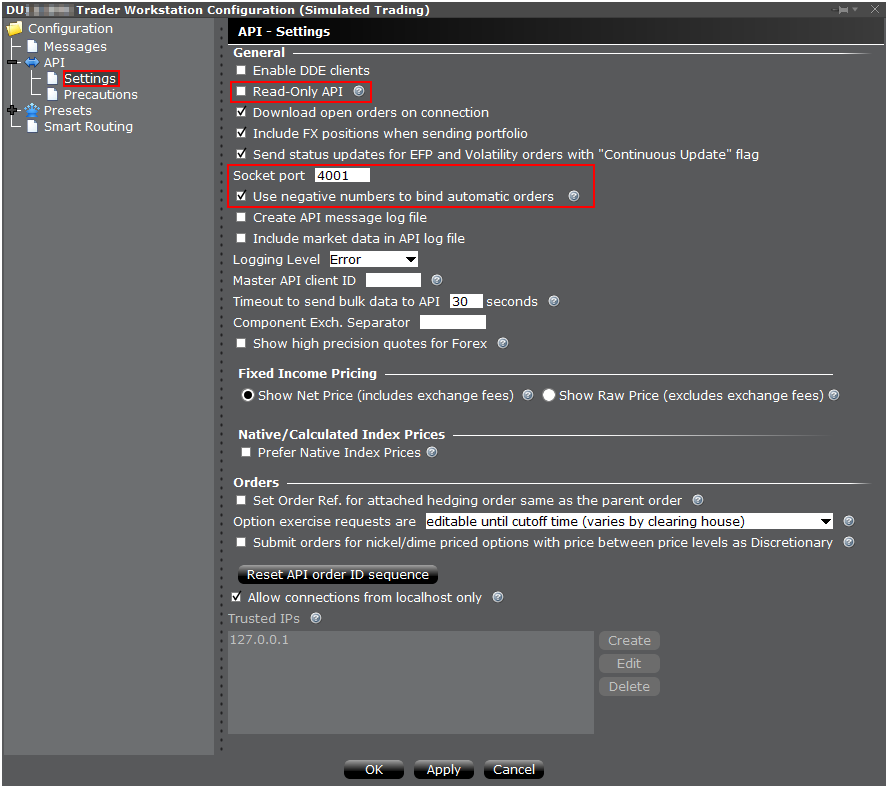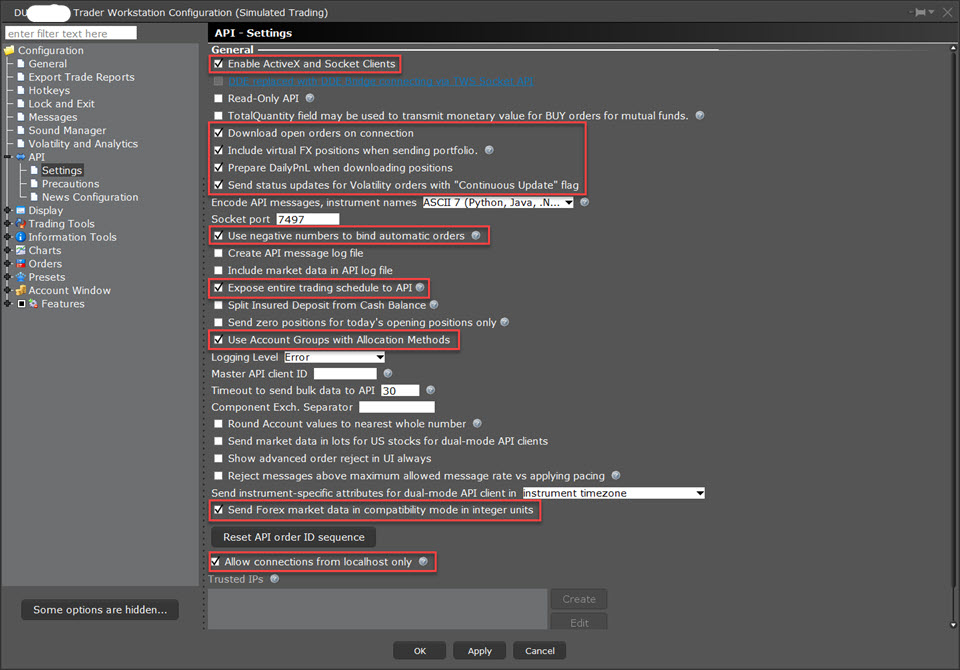 Configure TWS API Settings