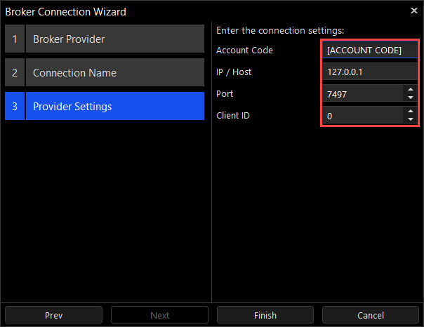 •Account Code - enter your Interactive Brokers account code here.