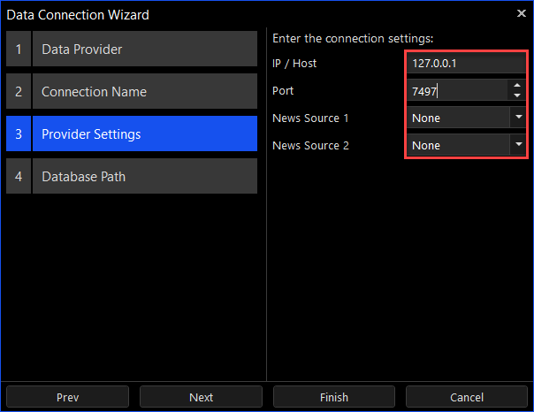 The following settings are used to connect to TWS or IB Gateway: