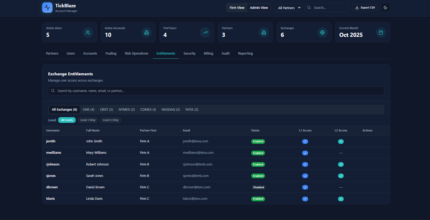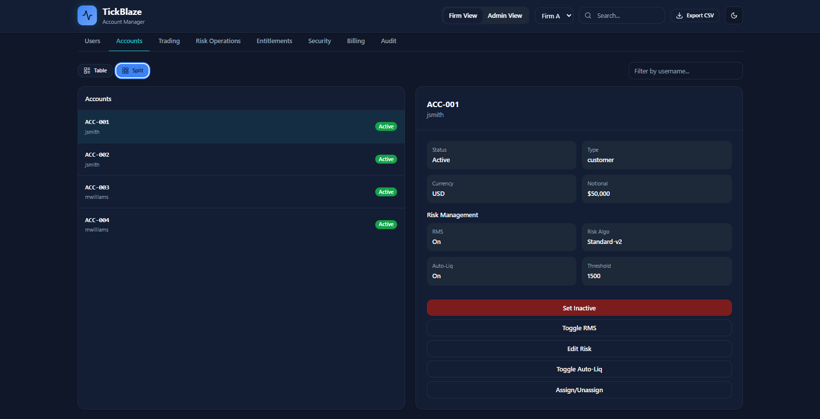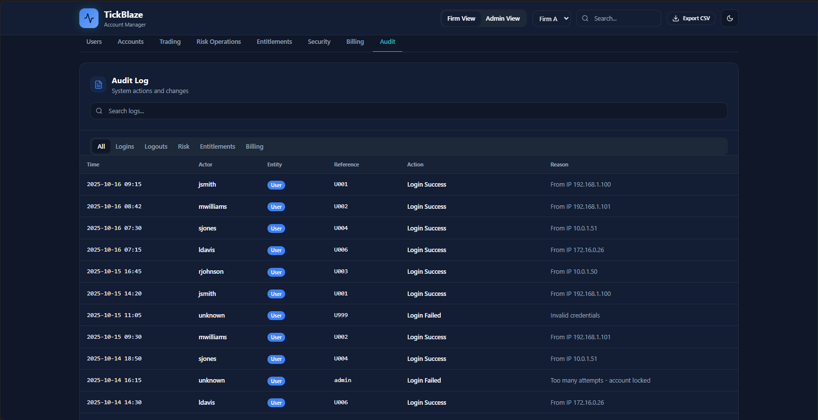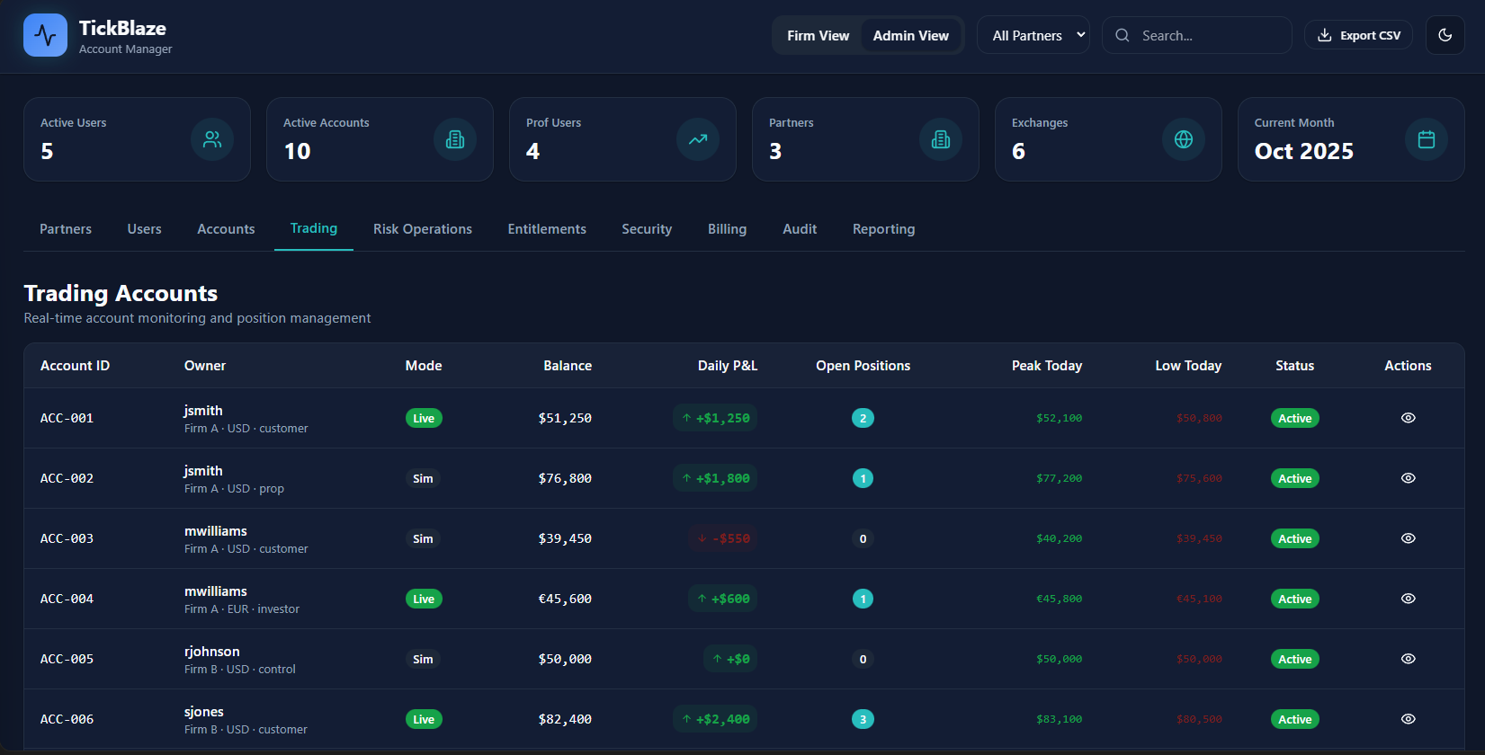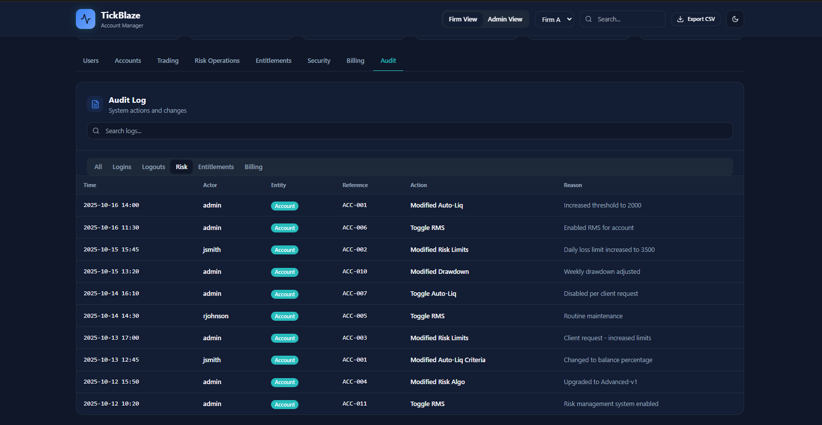 - CRM dashboards (Admin, Risk, Trader)
