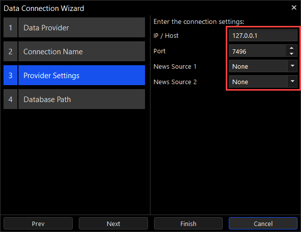 The following settings are used to connect to TWS or IB Gateway: